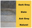 Voorraad Kleuren: Naturel, Slate en Dark Grey